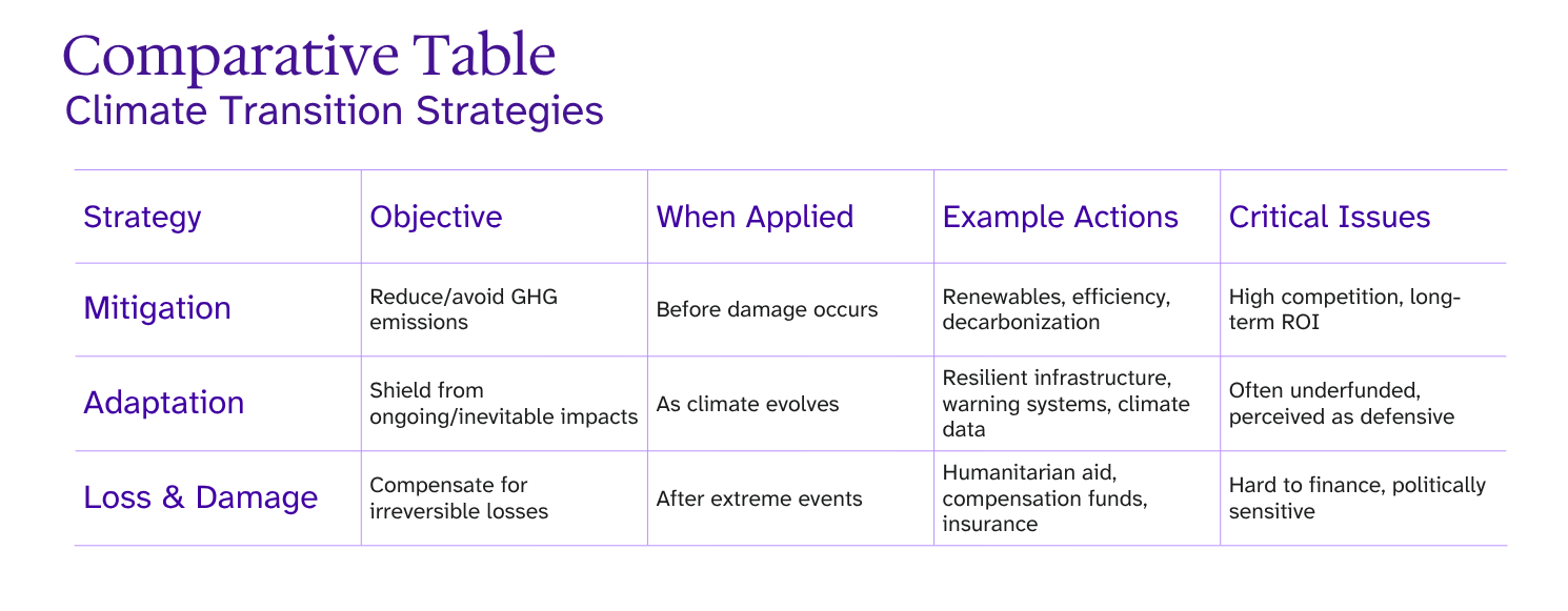 Between 2020 and 2024, global economic losses from extreme weather events exceeded $1.4trillion. The Network for Greening the Financial System (NGFS) warns that even in a net-zero transition scenario, global GDP could shrink by 8% by 2050 without robust resilience measures. In the Global South, the annual adaptation finance requirement is estimated at $300 billion, with current funding covering only about 10% of this amount. The evidence points clearly to the urgent need for prioritizing adaptation among climate strategies.