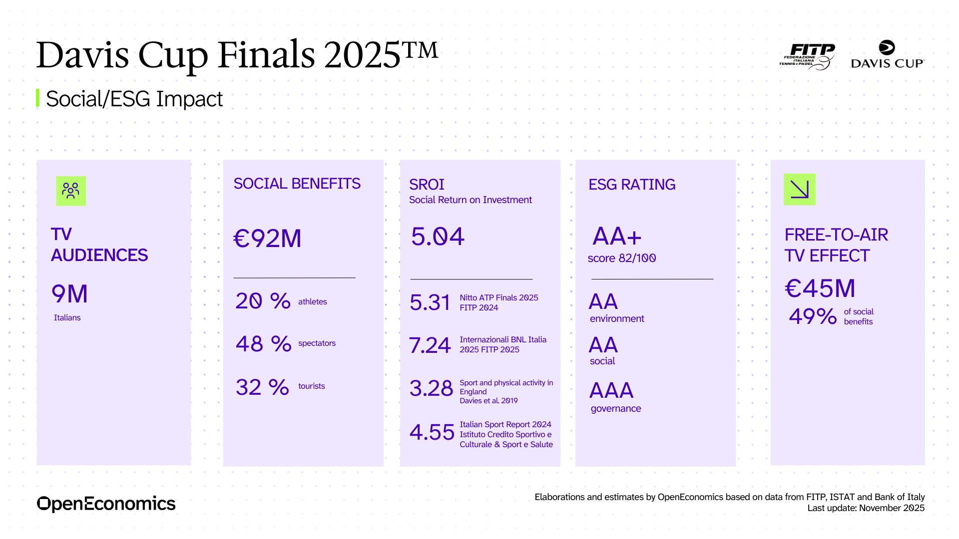 The latest OpenEconomics study, expanding its sport economy track record of analyses, measured the event’s impact using Social Return on Investment (SROI), which quantifies social benefits in relation to costs, and ESG ratings to assess environmental, social, and governance criteria.