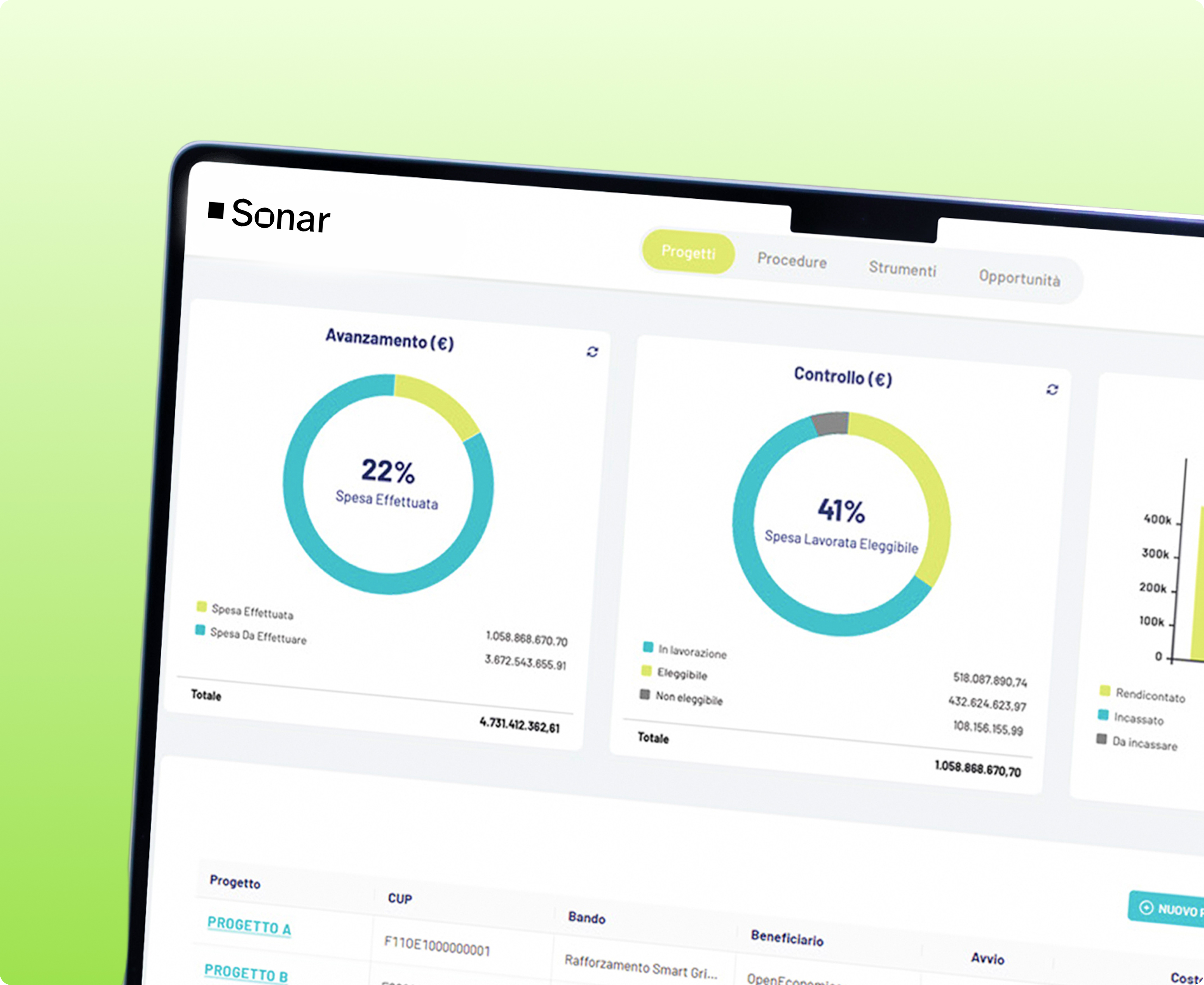 Una piattaforma SaaS per i finanziamenti pubblici che riduce i rischi di mancato incasso e accelera i tempi di erogazione, semplificando la documentazione, riducendo gli errori di rendicontazione e ottimizzando il reporting.